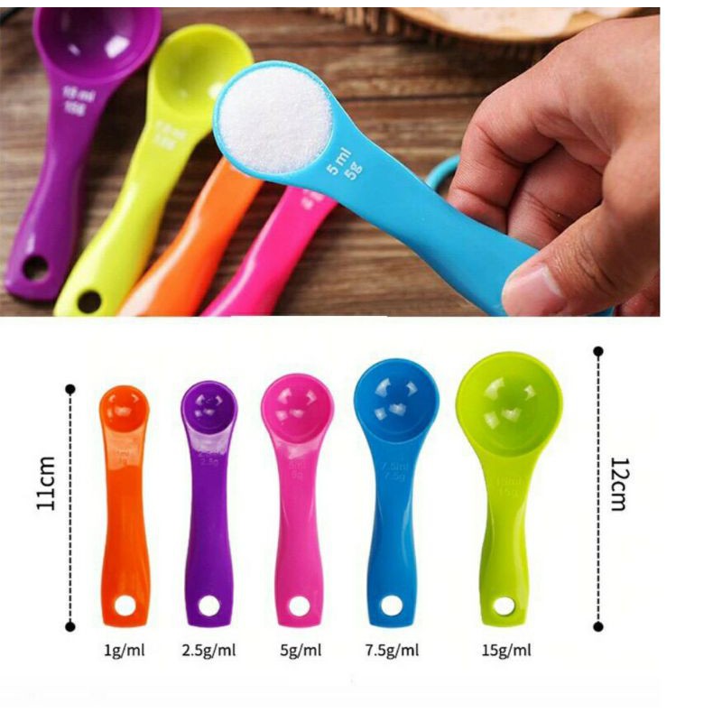 👉 Bộ thìa đong nhựa cứng, chất đẹp 5 màu 🌼- Bộ 5 muỗng đo lường bằng nhựa cao cấp thuận tiện cho bạn đo lường chính xác nguyên liệu để chế biến thức ăn.