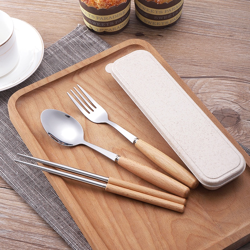 Nhà cửa & Đời sống > Bộ đồ bàn ăn > Dĩa || Bộ thìa đũa cá nhân ADERO muỗng đũa văn phòng có hộp thân inox cán gỗ chống nóng AD45Còn hàng