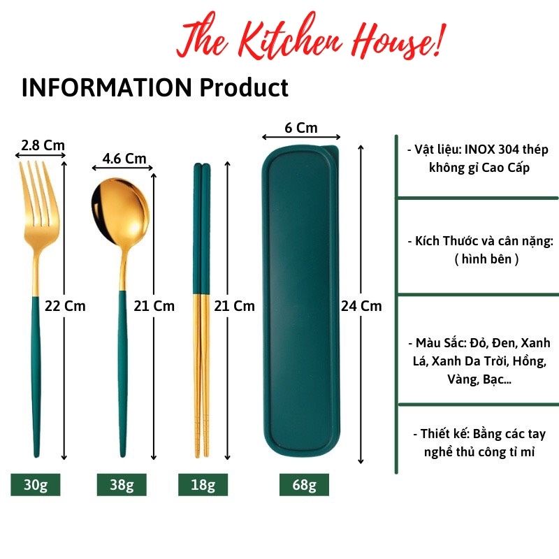 Bộ thìa đũa cá nhân INOX 304 cao cấp cán dài mạ vàng sang chảnh, bộ 3 món đũa thìa dĩa văn phòng kèm hộp The Kitchen HouseThe Kitchen House xin cảm ơn quý khách đã ghé thăm gian hàng của chúng tớ. Đây là sét đồ dùng thức ăn cá nhân thế hệ mới mạ vàng sang chảnh, an toàn cho sức khỏe.