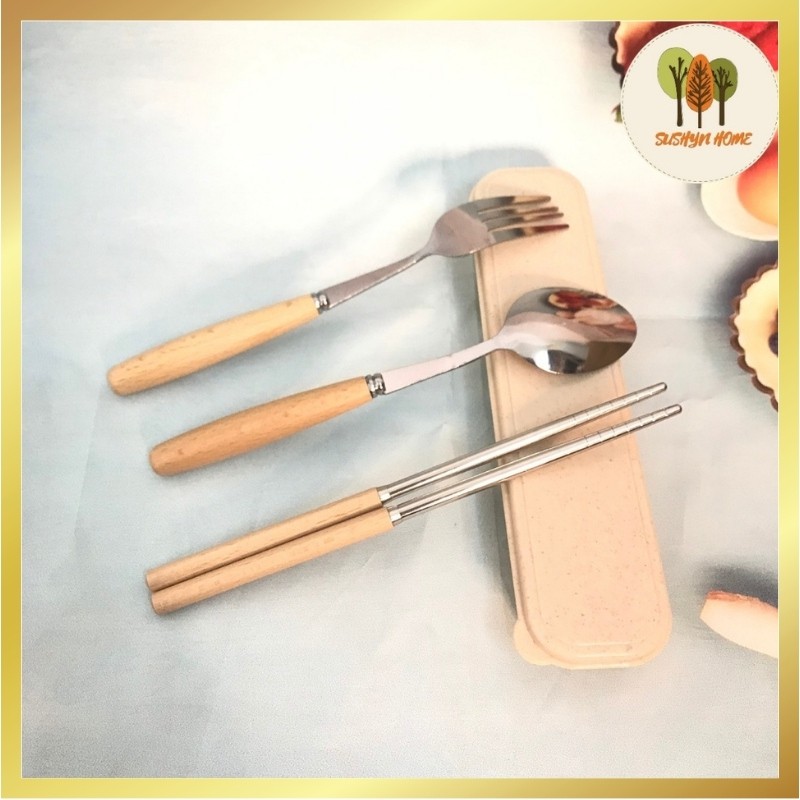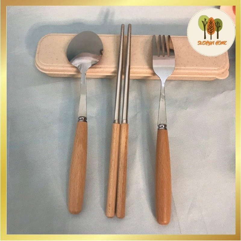 Bộ Thìa Đũa Cá NhânBộ Đũa Thìa Lúa Mạch Chuôi Gỗ Có Hộp ĐựngTiện Dụng Sạch Sẽ