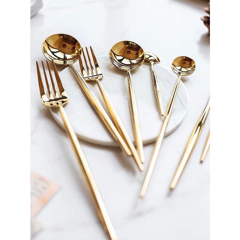 Nhà cửa & Đời sống > Bộ đồ bàn ăn > Bộ dao kéo || Thìa, đũa, dĩa, dao phong cách Bắc Âu cao cấp,[VIDEO TỰ QUAY], thiết kế tinh tế độc đáo, màu vàng bóngCòn hàng