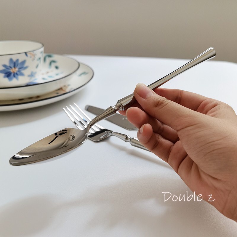 Thìa, đũa, dĩa, dao phong cách Bắc Âu cao cấp,[VIDEO TỰ QUAY], thiết kế tinh tế độc đáo, màu bạc sáng