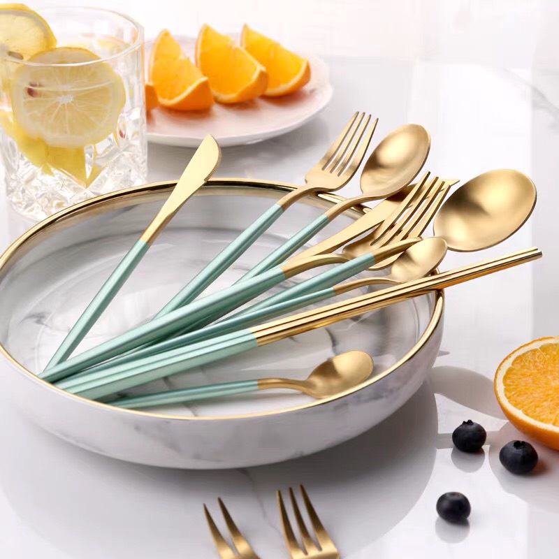 Nhà cửa & Đời sống > Bộ đồ bàn ăn > Bộ dao kéo || Thìa, đũa, dĩa, dao phong cách Bắc Âu cao cấp,[VIDEO TỰ QUAY], thiết kế tinh tế độc đáo, màu vàng mờCòn hàng