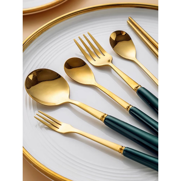 Nhà cửa & Đời sống > Bộ đồ bàn ăn > Dĩa || Thìa, đũa, dĩa, dao phong cách Bắc Âu cao cấp, thiết kế tinh tế độc đáo, màu vàng cán sứ xanh đầm tay, tiện dụngCòn hàng
