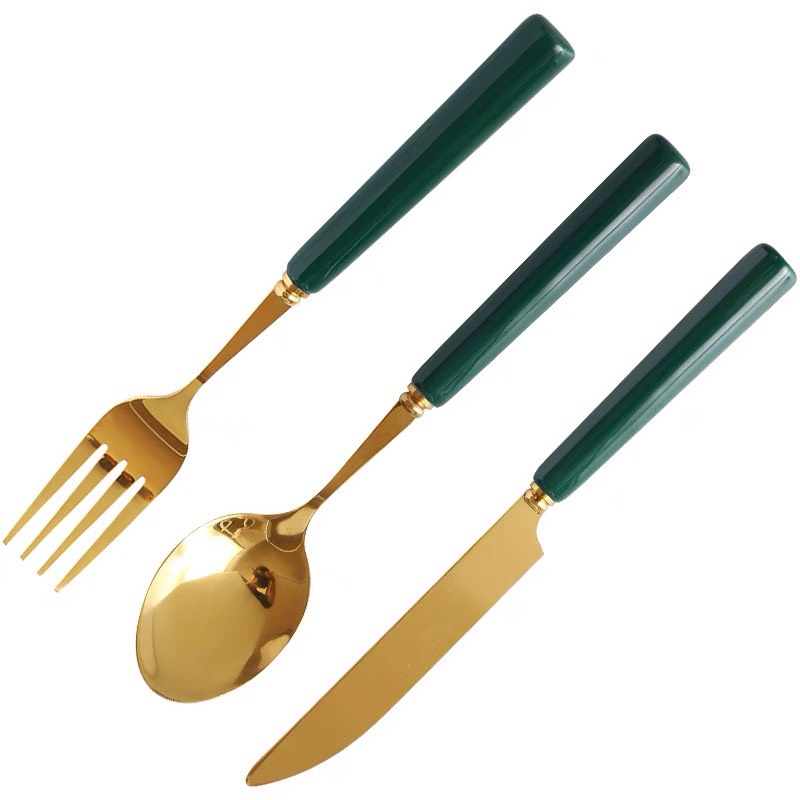 Giới thiệu Thìa, đũa, dĩa, dao phong cách Bắc Âu cao cấp, thiết kế tinh tế độc đáo, màu vàng cán sứ xanh đầm tay, tiện dụng