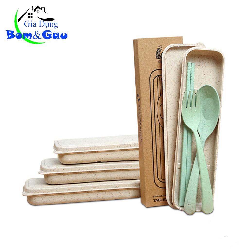 Bộ thìa đũa dĩa lúa mạch có hộp tiện lợi thân thiện môi trường an toàn sử dụng