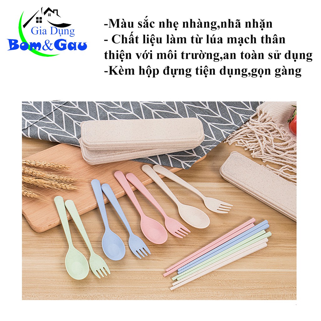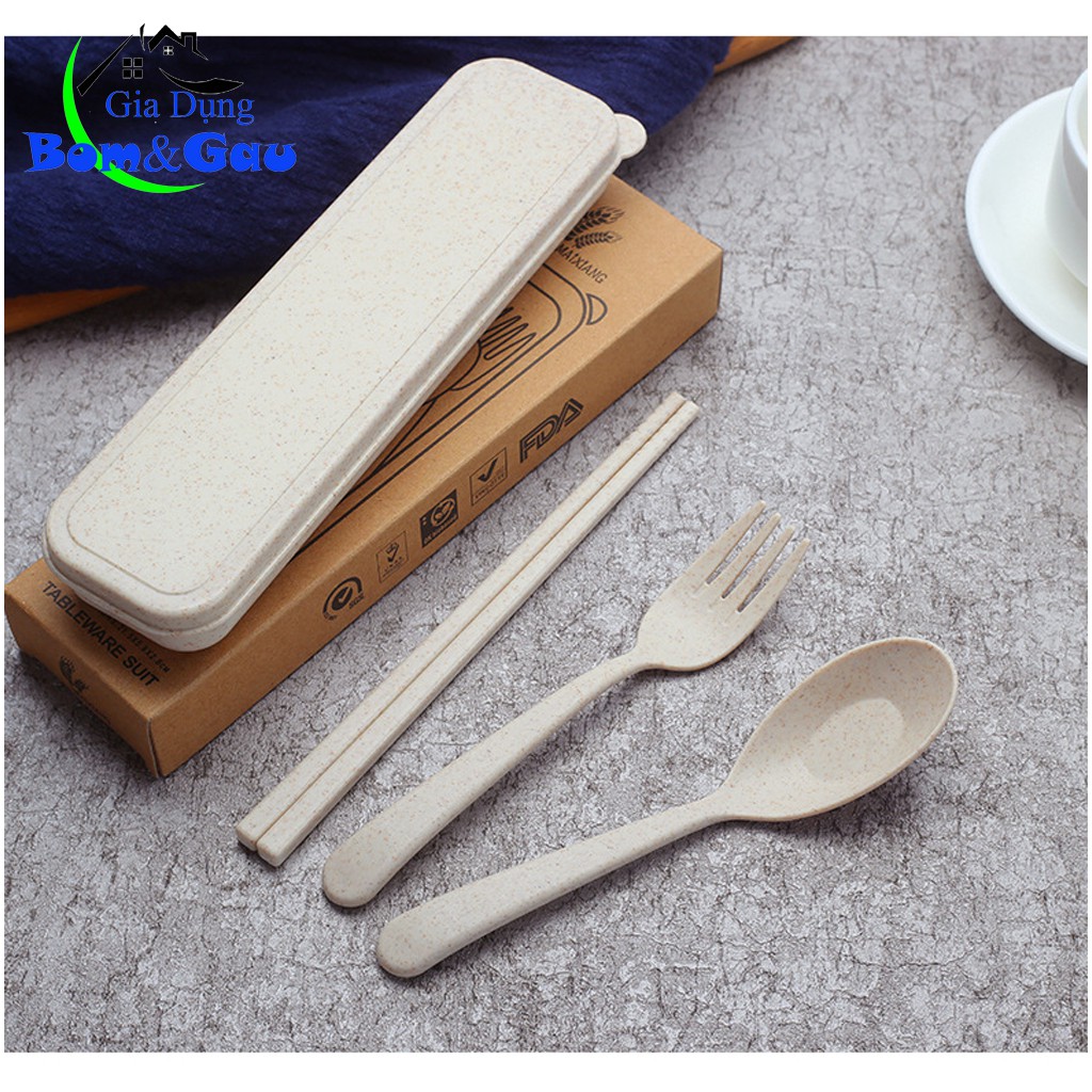 Bộ Thìa Đũa Dĩa Lúa Mạch kèm hộp tiện lợi du lịch / ăn trưa văn phòng ❤ ❤ ❤🔔 Theo dõi gian hàng nhận 💲VOUCHER💲 khủng 🔔