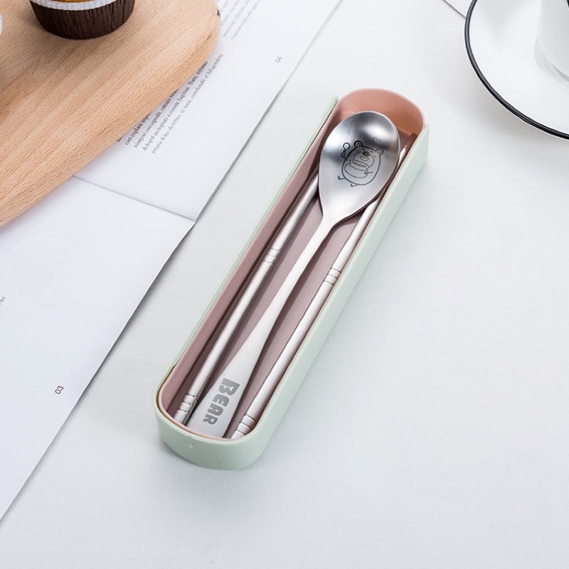Bộ thìa đũa inox 304 cao cấp cho dân văn phòng . Bộ thìa đũa kèm hộp đựng