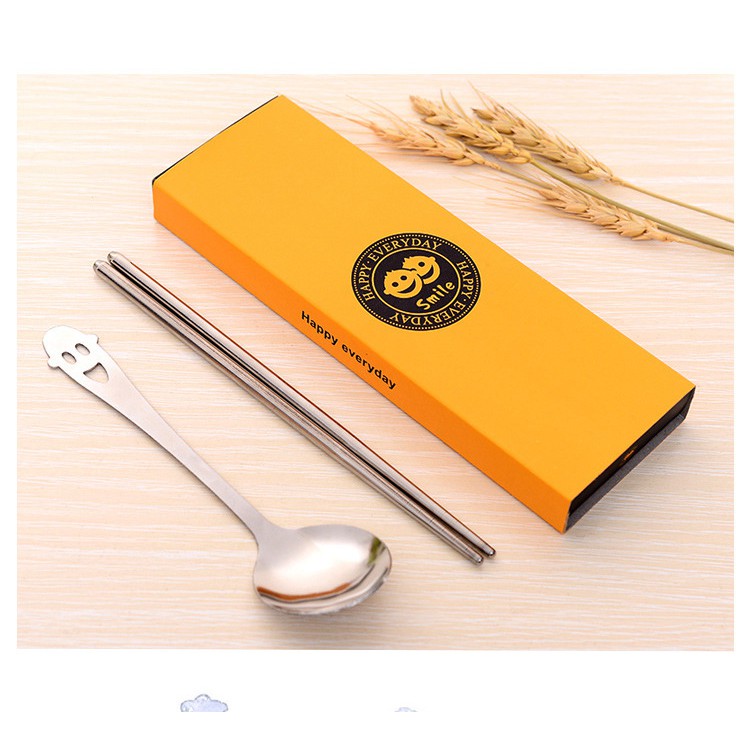 Bộ Thìa Đũa Inox 305 Hình Mặt Cười Siêu Cute - Thìa Đũa Văn Phòng