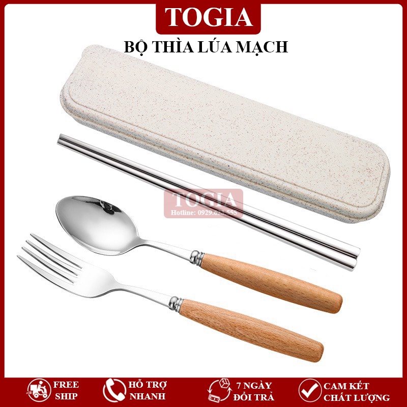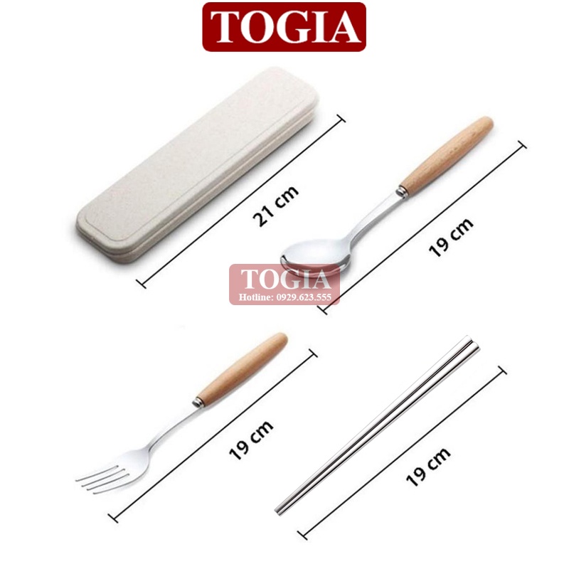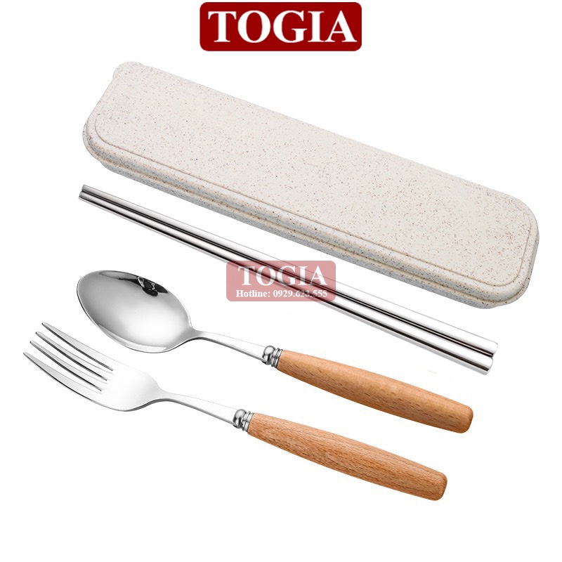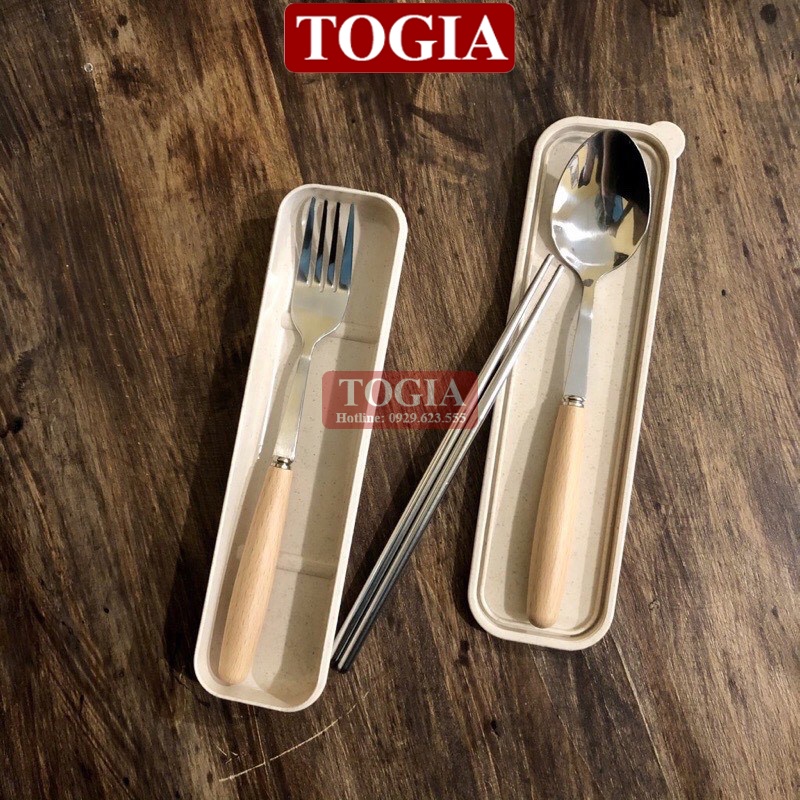 - Bộ gồm đũa, thìa và dĩa inox rất đẹp cán gỗ sồi, đựng trong 1 hộp nhựa lúa mạch sang trọng. Dùng mang cơm đi làm, mang đi du lịch hay picnic tiện lợi.