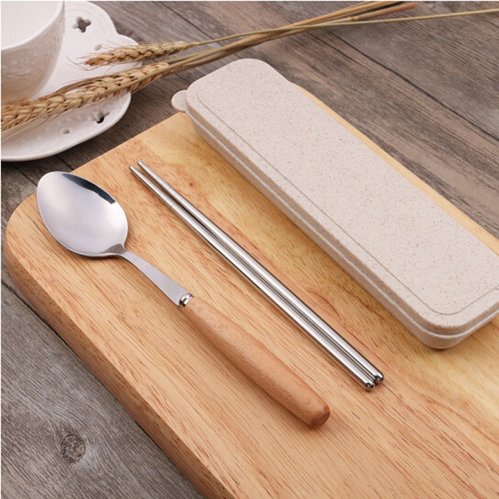 Bộ thìa đũa inox chống rỉ cán gỗ cao cấp tiện lợi - DOPA