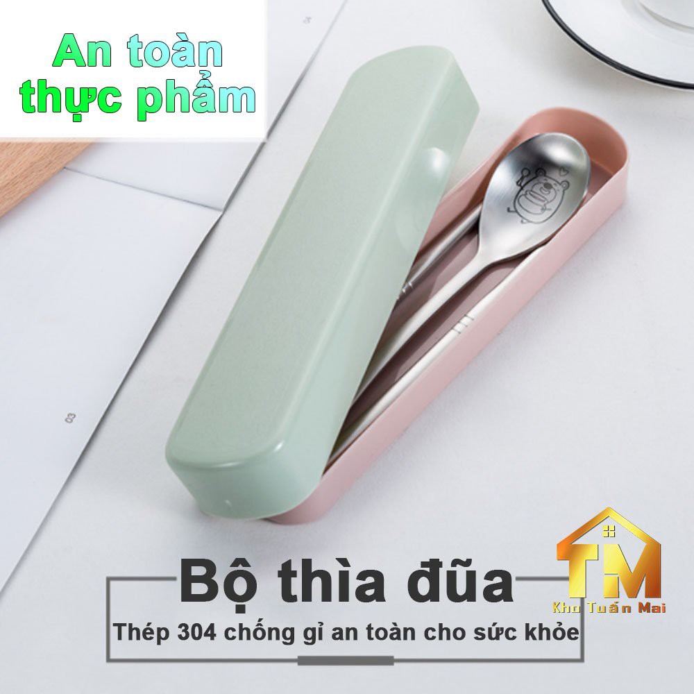 Bộ thìa đũa 💎INOX304💎 hình gấu sản phẩm gồm Muỗng Đũa Nĩa có hộp đựng dành cho văn phòng hoặc đi du lịch tiện dụng