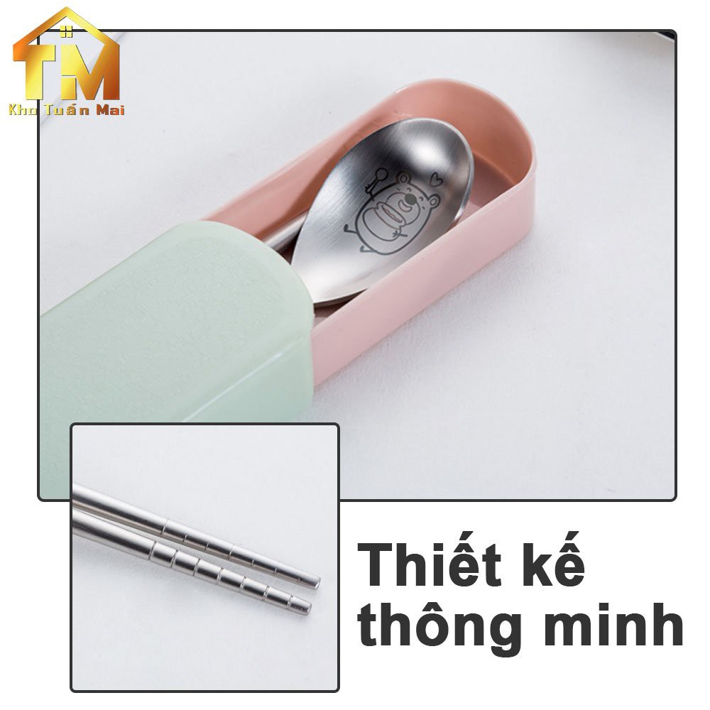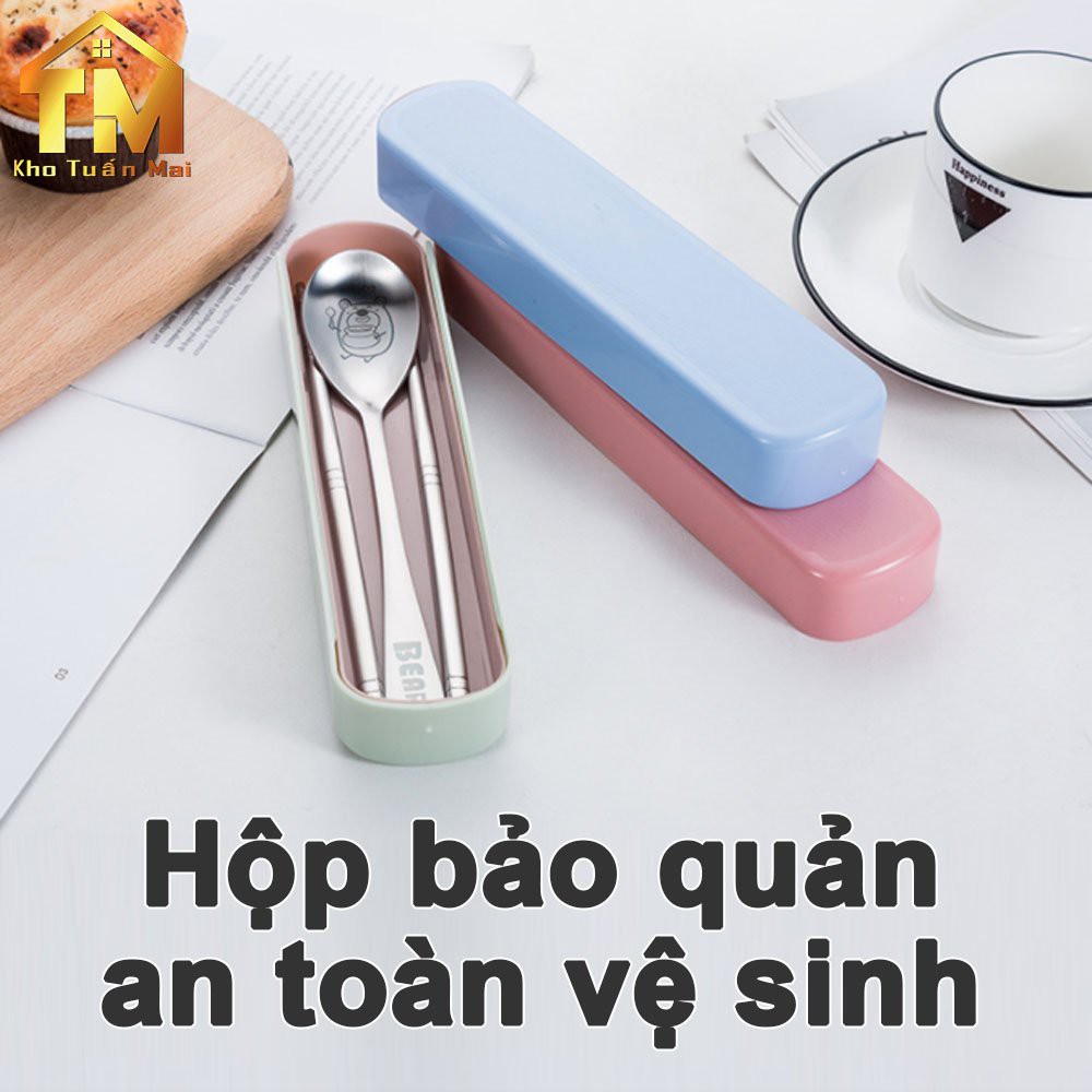 Bộ thìa đũa INOX304 hình gấu sản phẩm gồm Muỗng Đũa Nĩa có hộp đựng dành cho văn phòng hoặc đi du lịch tiện dụng