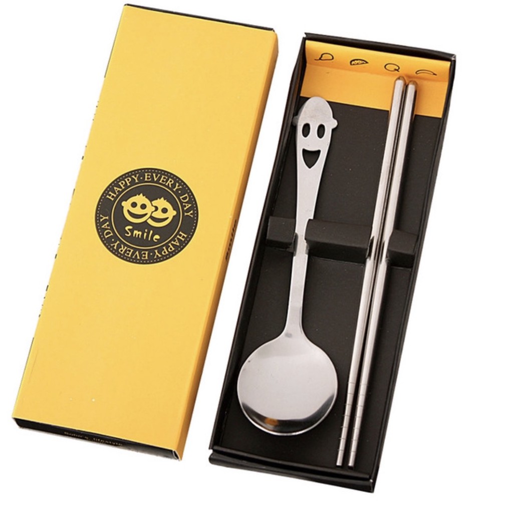 bộ sản phẩm bao gồm 1 thìa và 1 đôi đùachất liệu thép không gỉ chắc chắn, an toàn