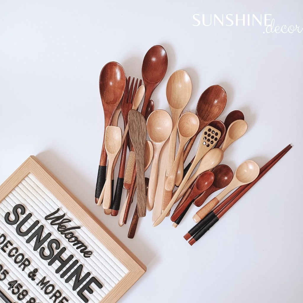 Nhà cửa & Đời sống > Bộ đồ bàn ăn > Dĩa || Thìa gỗ muỗng gỗ ăn cơm cán dài từ gỗ tự nhiên phong cách Hàn QuốcCòn hàng