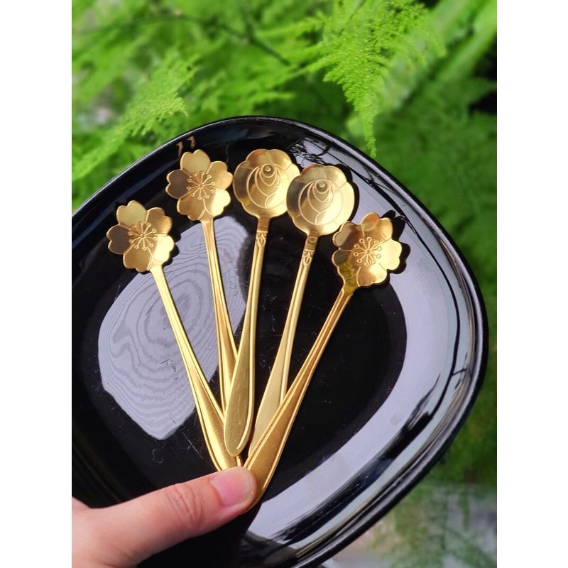 Thìa hình hoa anh đào,hoa hồng sáng tạo bằng thép không gỉ dành cho pha cà phê phong cách Nhật Bản và Hàn Quốc