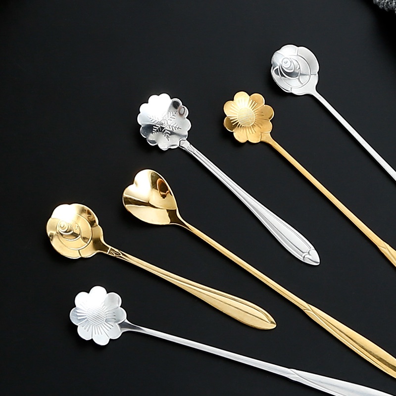 * Thìa cà phê ăn bánh kem, mật ong bằng inox hình dạng bông hoa