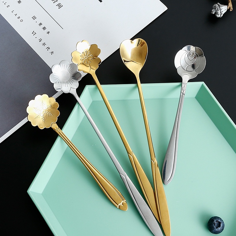 Nhà cửa & Đời sống > Bộ đồ bàn ăn > Bộ dao kéo || Thìa Hoa Anh Đào - Hoa Hồng Mạ Vàng/ Bạc Phong Cách Cổ Điển Sang Trọng - Thìa Cafe Inox Cao Cấp DuashopCòn hàng