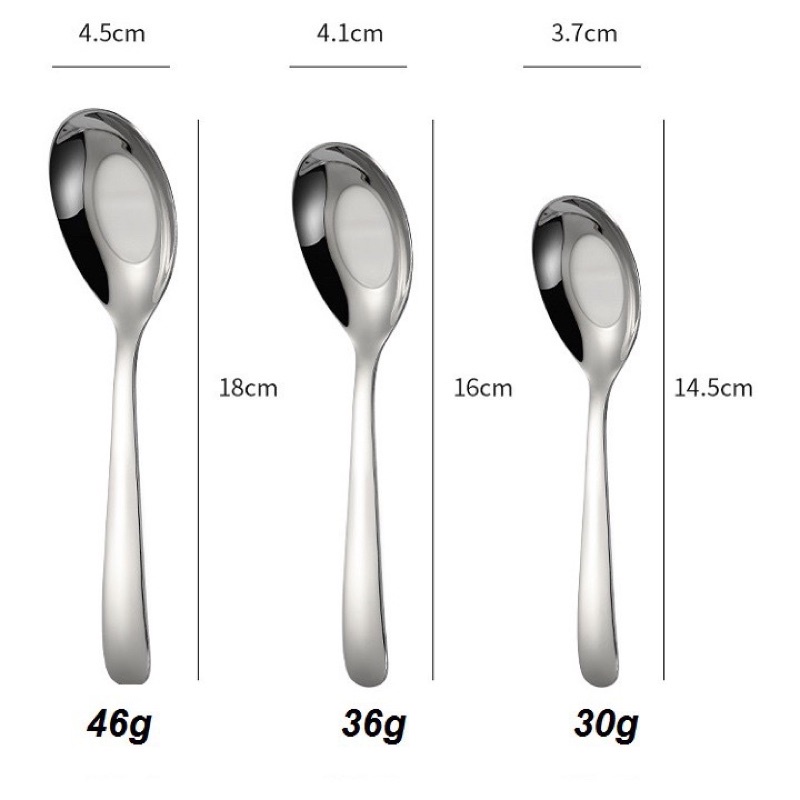 + Thìa dài 18cm * rộng 4.5cm = 46g