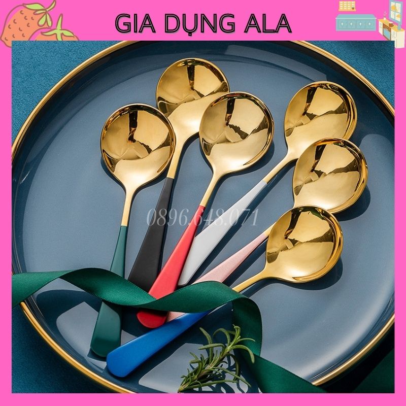 Nhà cửa & Đời sống > Bộ đồ bàn ăn > Bộ dao kéo || Thìa Inox Cán Dài Mạ Vàng Cao Cấp Hàn Quốc Ăn Cơm Sang Trọng, Muỗng Ăn Inox Mạ Vàng An Toàn 5 Màu Cực ĐẹpCòn hàng