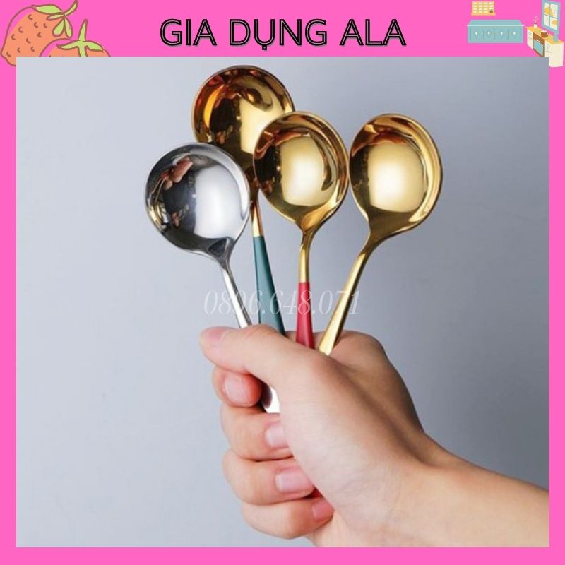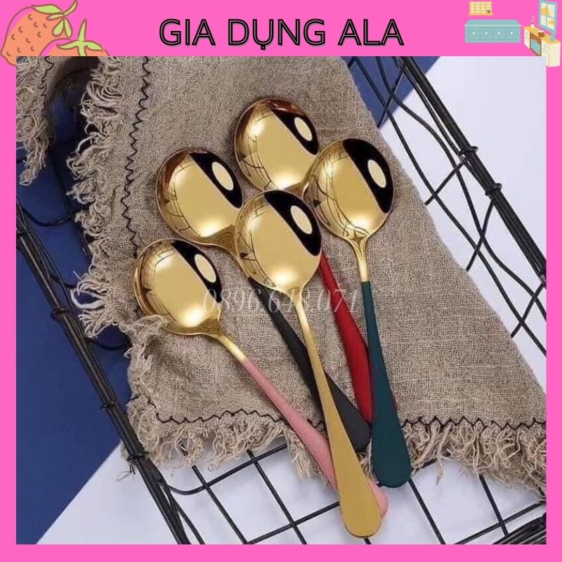 Thìa Inox Cán Dài Mạ Vàng Cao Cấp Hàn Quốc Ăn Cơm Sang Trọng, Muỗng Ăn Inox Mạ Vàng An Toàn 5 Màu Cực ĐẹpThìa Inox cán dài đã cập bến nhà em rồi nè, xinh lắm luôn ý