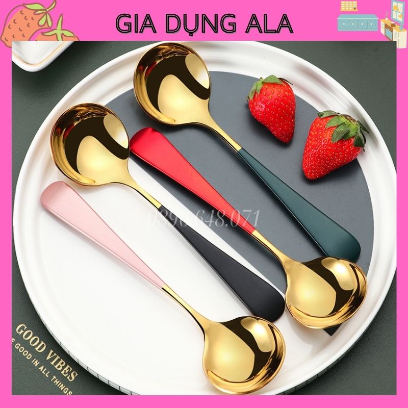 Thìa Inox Cán Dài Mạ Vàng Cao Cấp Hàn Quốc Ăn Cơm Sang Trọng, Muỗng Ăn Inox Mạ Vàng An Toàn 5 Màu Cực Đẹp