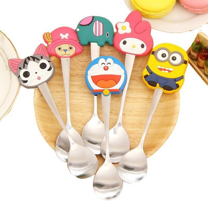 Nhà cửa & Đời sống > Bộ đồ bàn ăn > Bộ dao kéo || Thìa inox cán silicon hình hoạt hình siêu đáng yêuCòn hàng