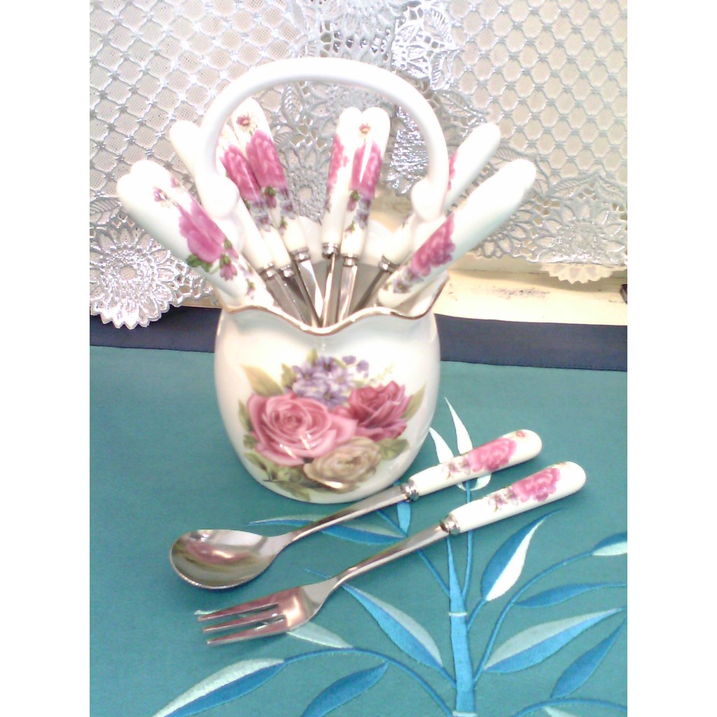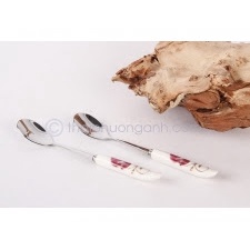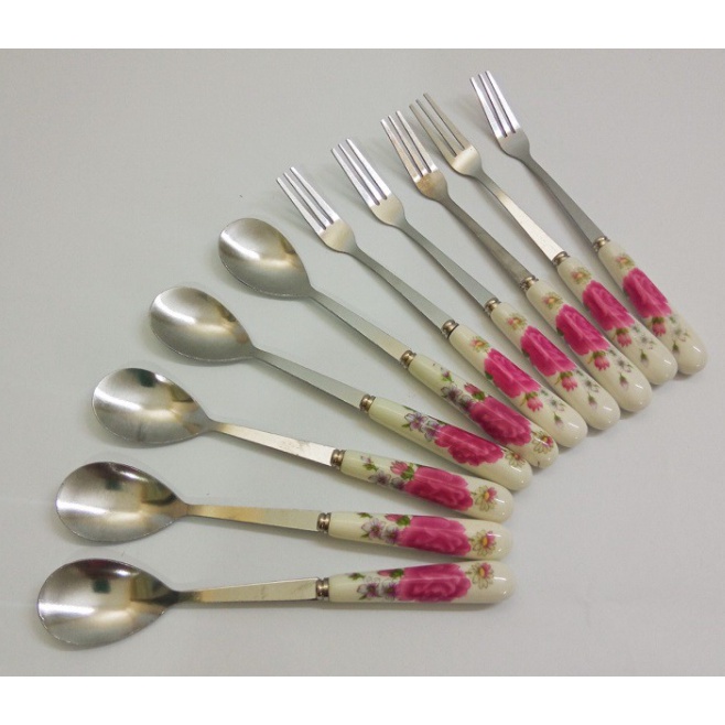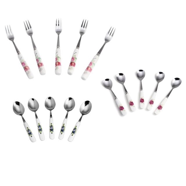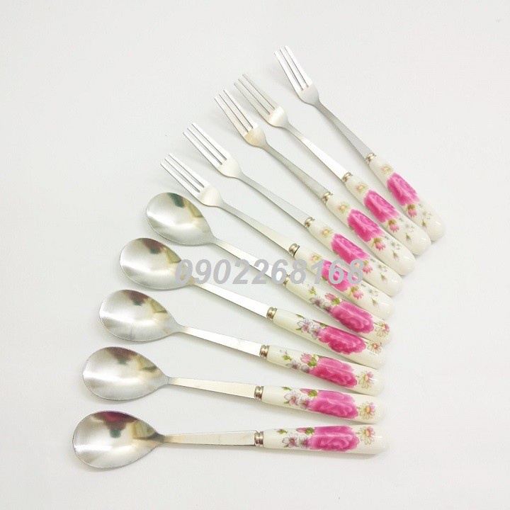 Thìa inox cán sứ cao cấp, dĩa inox cán sứ