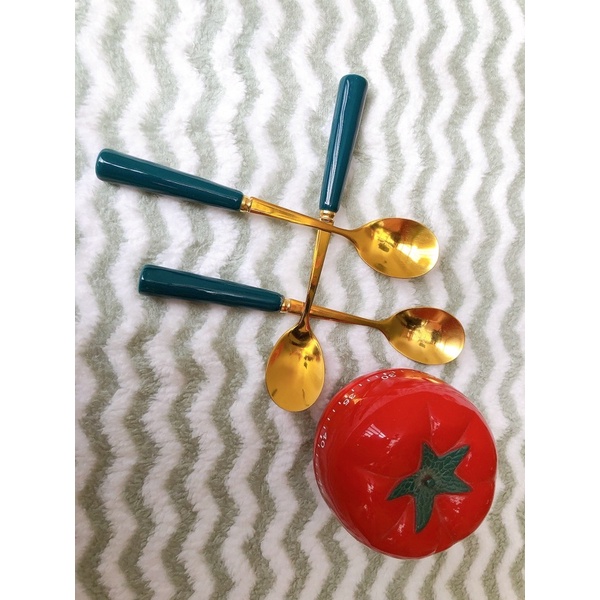 Nhà cửa & Đời sống > Bộ đồ bàn ăn > Bộ dao kéo || Thìa inox decor sang xịn có cán sứ Xanh dùng khuấy cafe, tràCòn hàng