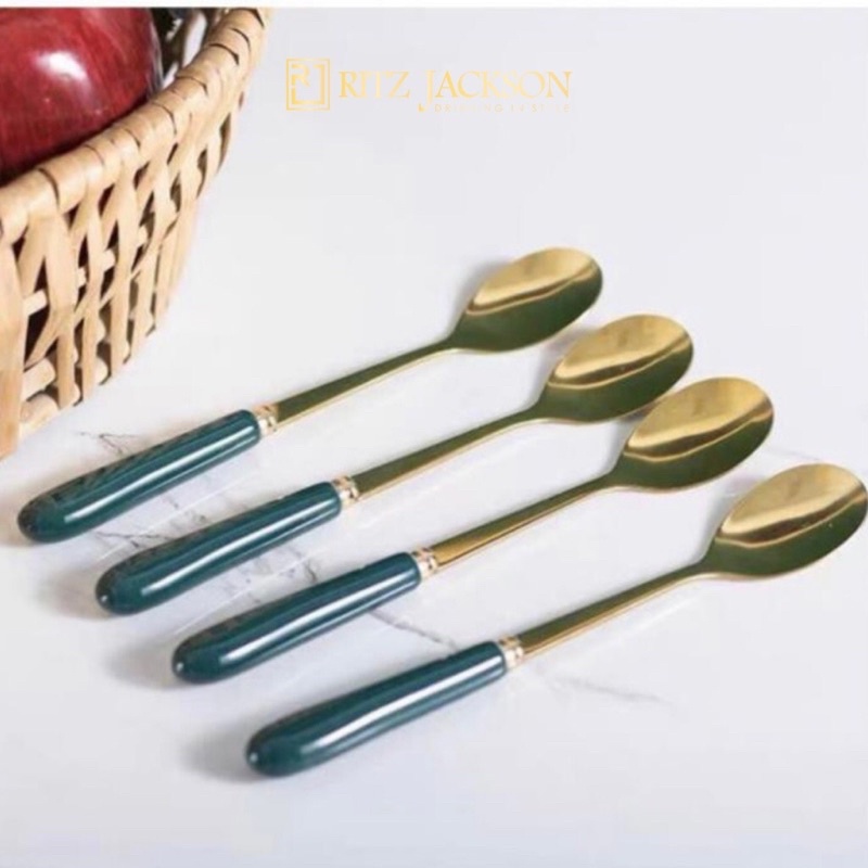 Giới thiệu Thìa inox decor sang xịn có cán sứ Xanh dùng khuấy cafe, trà