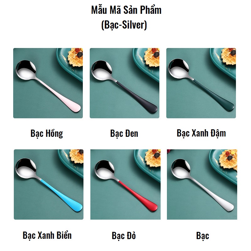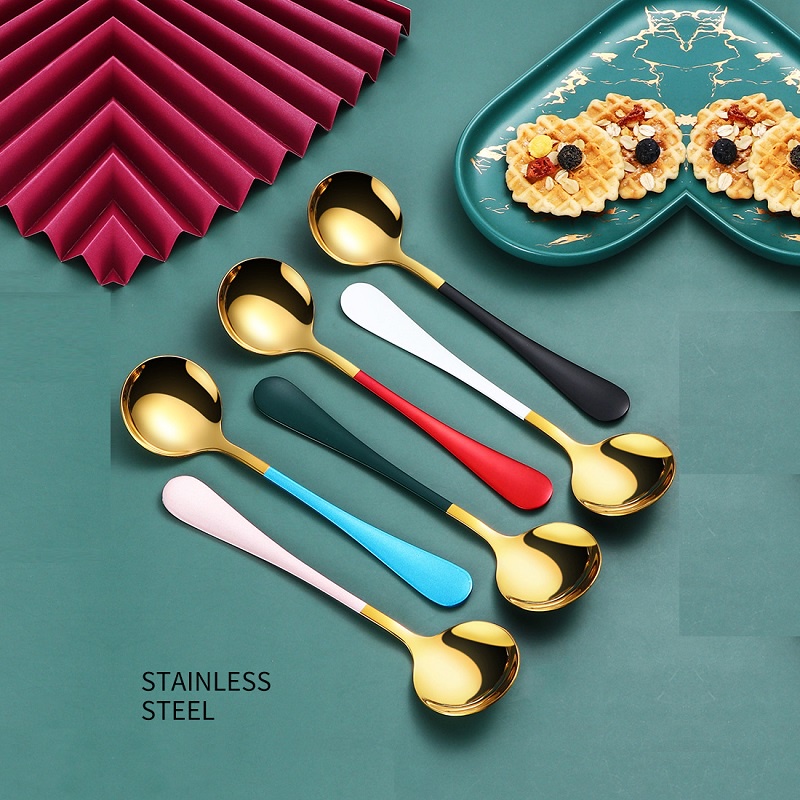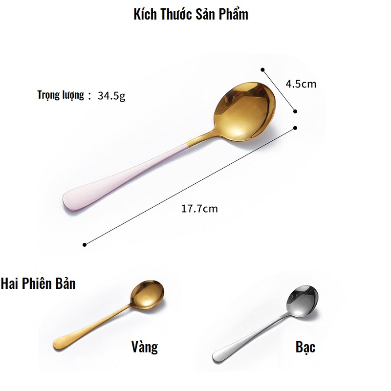 ✔️ Thìa Inox Mạ Vàng Cán Dài Nhiều Màu Với thiết kế tròn, rộng phù hợp khuôn miệng, dễ dàng xúc cơm, soup, cháo...