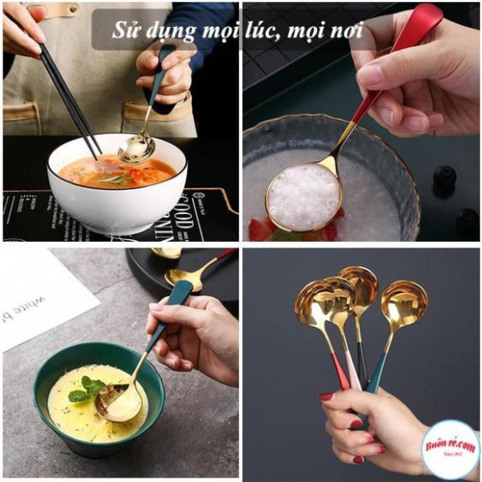✔️ Thìa Inox Mạ Vàng Cán Dài Nhiều Màu Với thiết kế tròn, rộng phù hợp khuôn miệng, dễ dàng xúc cơm, soup, cháo...
