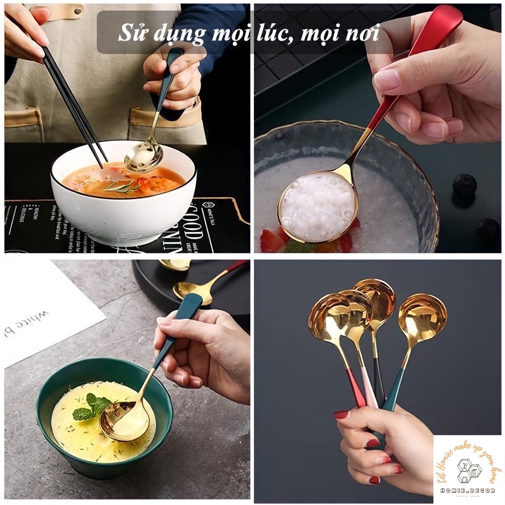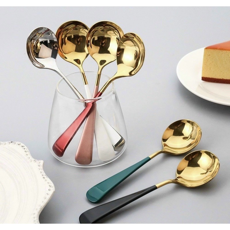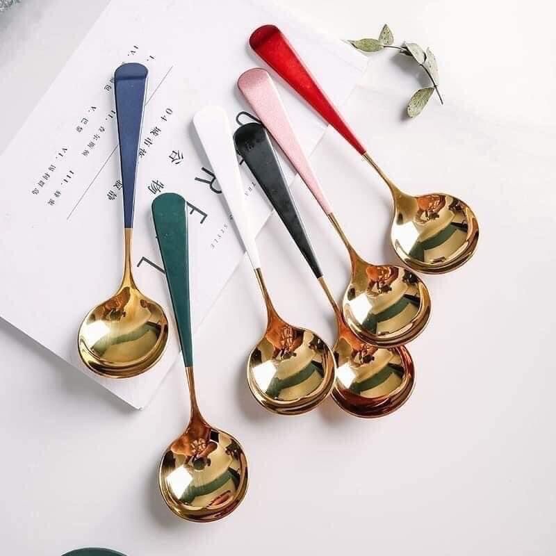 📌Thìa inox mạ vàng cán dài nhiều màu, thìa inox decor sang chảnh- Thìa Inox mạ vàng cao cấp với thiết kế tròn, rộng phù hợp khuôn miệng, dễ dàng xúc cơm, soup, cháo...