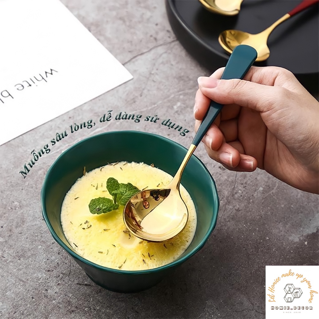 Thìa inox mạ vàng cán dài nhiều màu, thìa inox decor sang chảnh