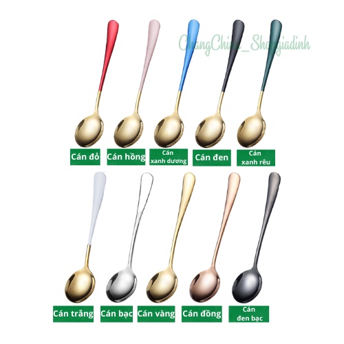 Giới thiệu Thìa Inox mạ vàng cán dài nhiều màu sắc