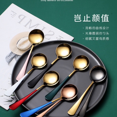 Nhà cửa & Đời sống > Bộ đồ bàn ăn > Bộ dao kéo || Thìa Inox mạ vàng cán dài nhiều màu sắcCòn hàng