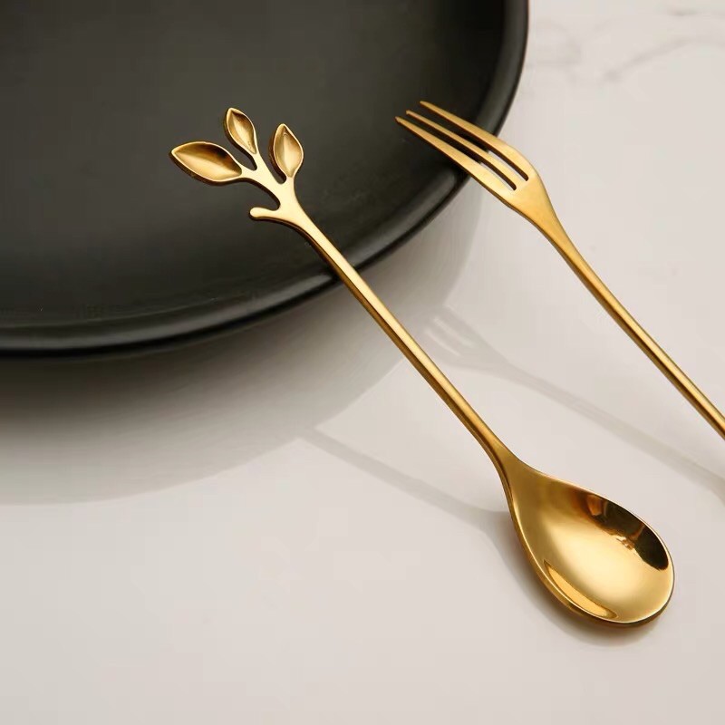 Tên SP: Thìa inox mạ vàng chuôi hình lá cao cấp - VS243Mã SP: VS243