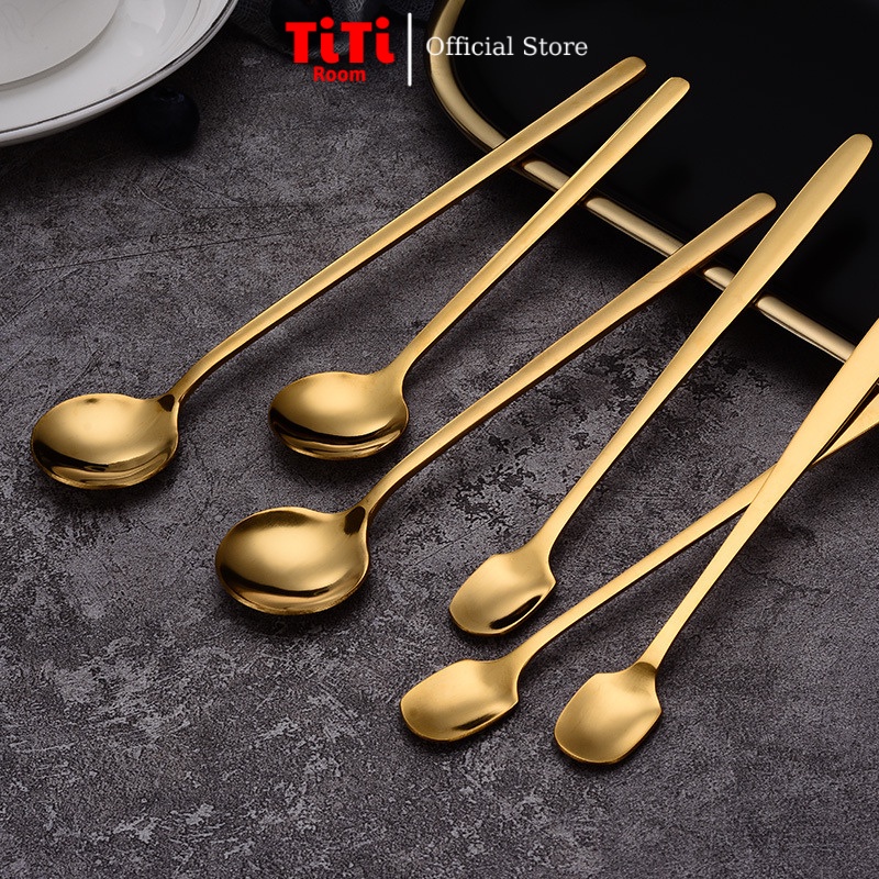 Nhà cửa & Đời sống > Dụng cụ nhà bếp > Dụng cụ pha trà, cà phê || Thìa inox mạ vàng pha cà phê cao cấp sang chảnh Hàn Quốc Muỗng pha trà dễ thương TiTi RoomCòn hàng