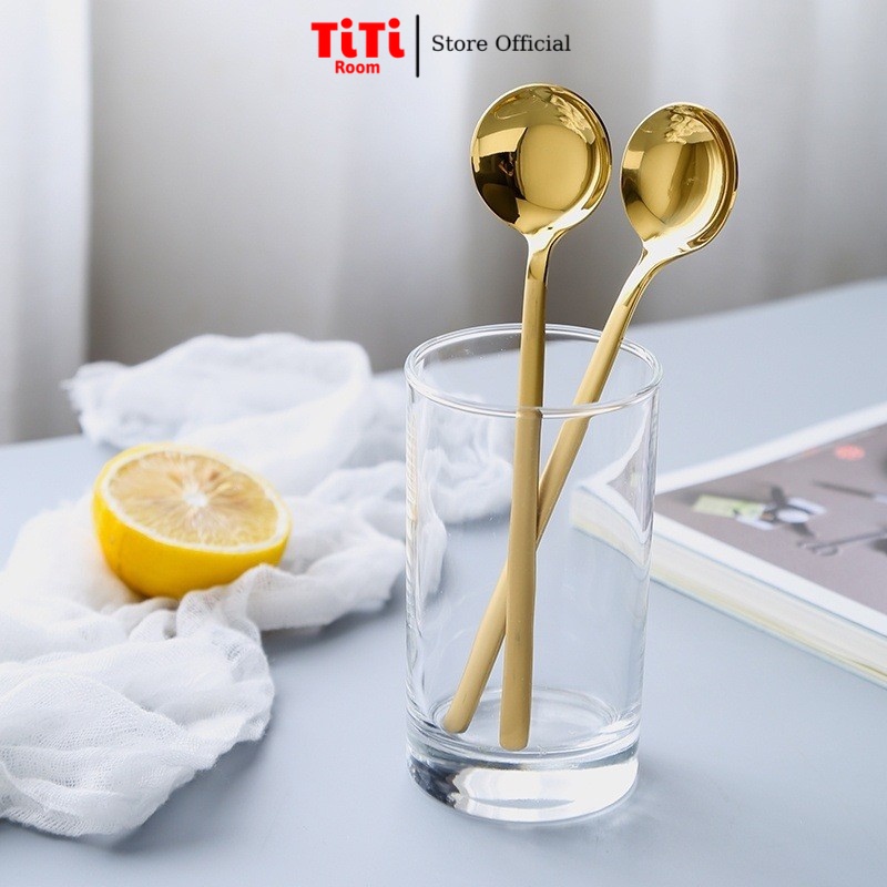 Thìa inox mạ vàng pha cà phê cao cấp sang chảnh Hàn Quốc Muỗng pha trà dễ thương TiTi Room