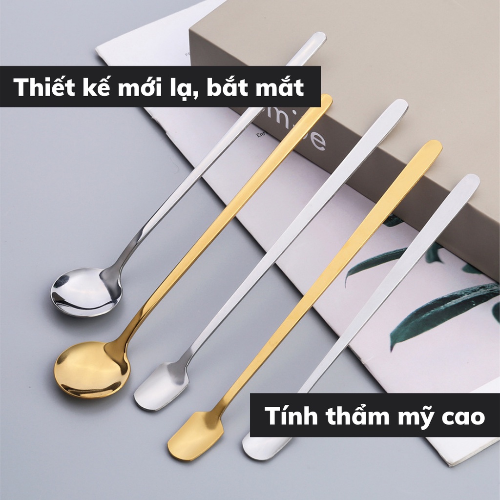 Thìa inox pha tra dụng cụ pha chế cà phê mạ vàng muỗng cafe thiết kế sang trọng cán dài 13 - 15 - 17cm