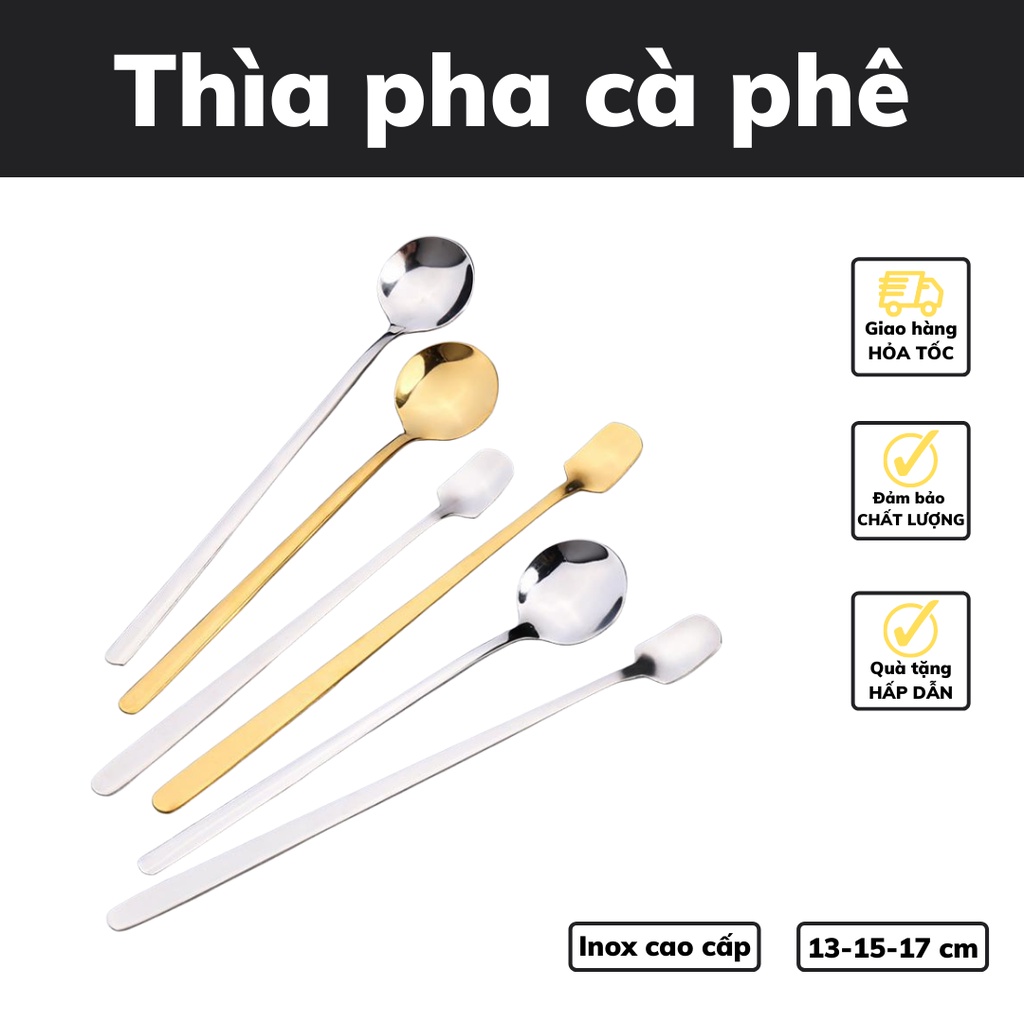 Thìa inox pha trà mạ vàng dụng cụ pha chế cà phê muỗng pha cafe cán dài thiết kế sang trọng độ dài 13 - 15 - 17 cmThông tin sản phẩm: