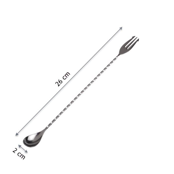- Một đầu có dạng thìa dùng để khuấy cocktail, một đầu có thanh nhọn dùng để ghim trái cây.