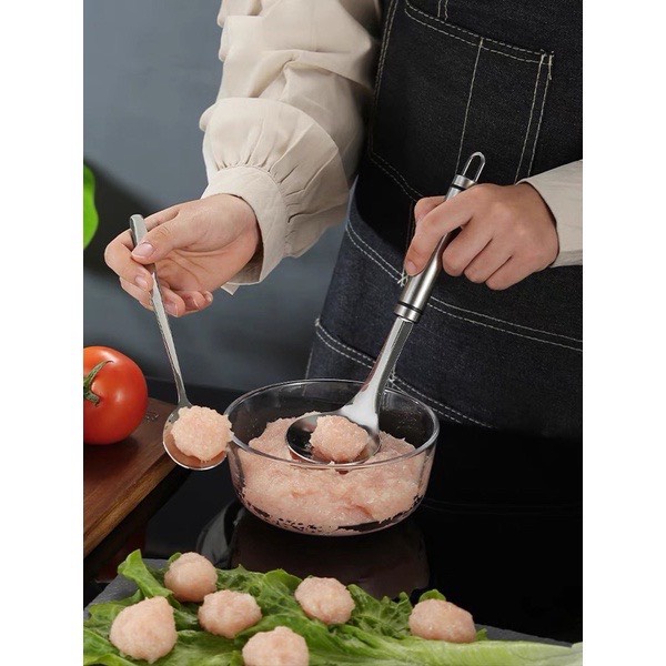 ♘ THÌA LÀM MỌC, Thịt, Cá Viên 100% Inox 304 Loại 1 Cao Cấp, Thần Thánh giúp tạo hình chả viên không mất công nặn.