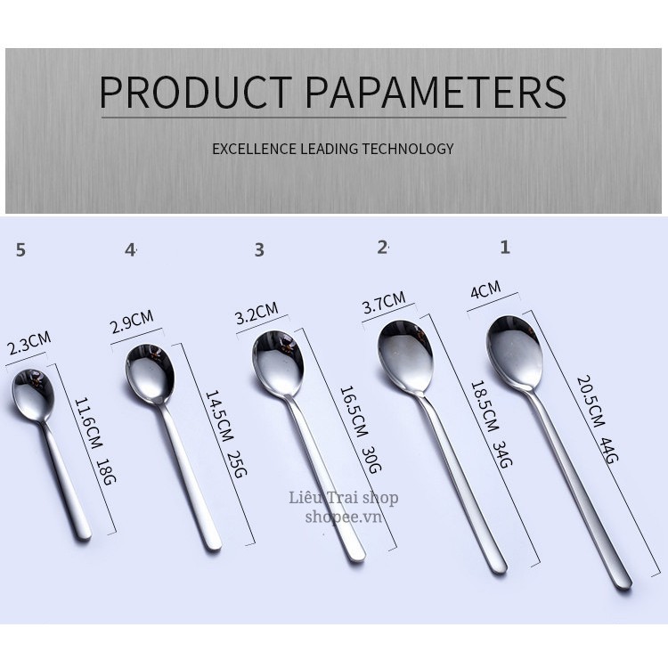 Muỗng có 5 size: