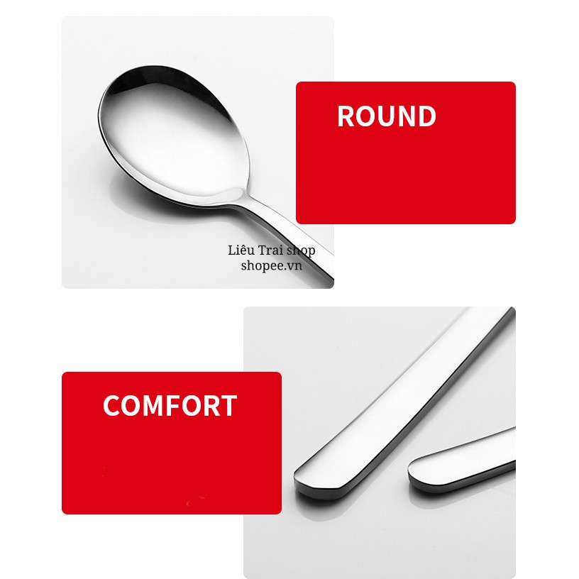 Thìa muỗng Inox , sản phẩm được làm bằng Inox 304, chống ăn mòn bởi acid và kiềm, độ bền vĩnh cửuCông nghệ mạ tiên tiến bóng như gương, tạo thẩm mỹ và sạch sẽ