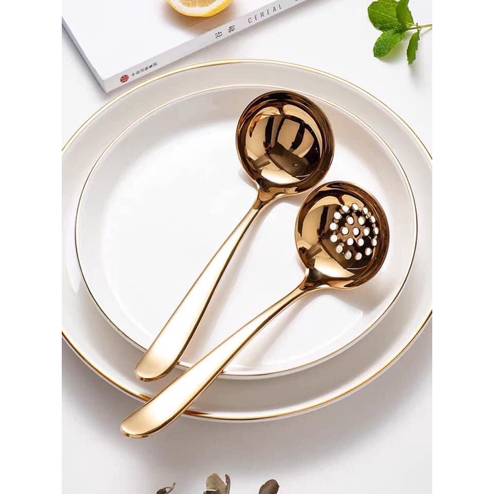 Nhà cửa & Đời sống > Bộ đồ bàn ăn > Dĩa || Thìa, muỗng soup, thìa inox màu vàng phong cách Châu Âu sang trọng cao cấpCòn hàng