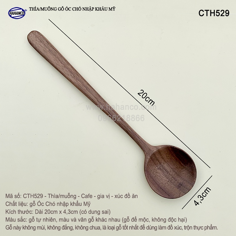 Giới thiệu Thìa/muỗng tròn - gỗ Óc Chó nhập khẩu Mỹ (20cm) an toàn thực phẩm - CTH529