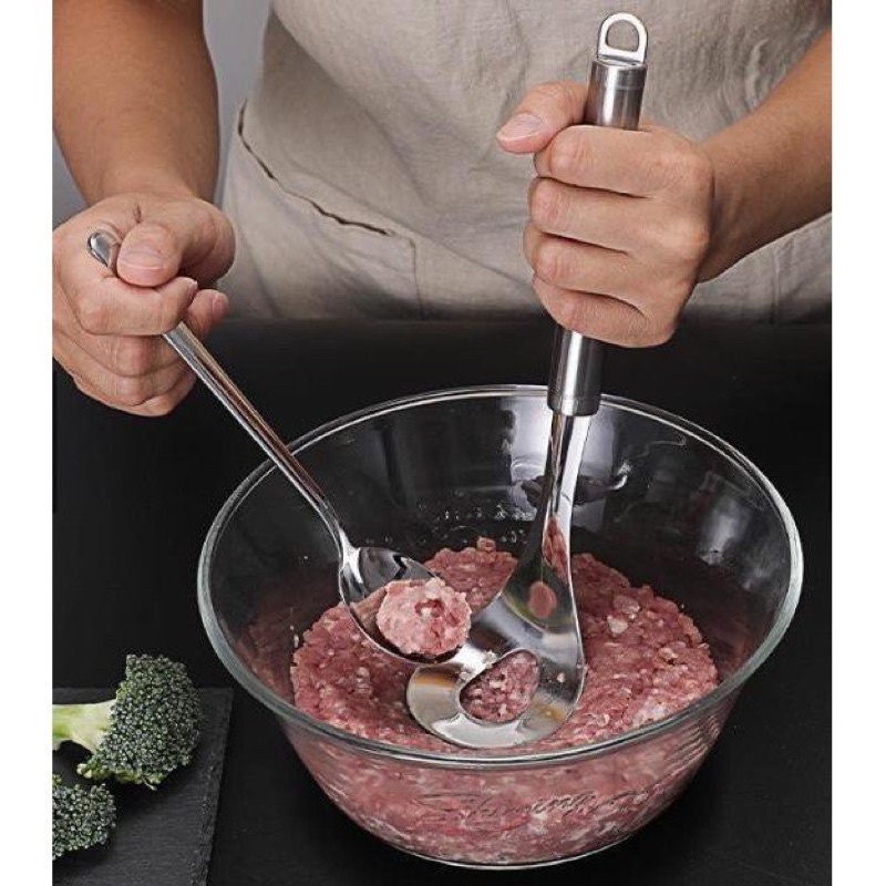 Nhà cửa & Đời sống > Dụng cụ nhà bếp > Cây vét bột & đồ gắp thức ăn || Thìa nặn thịt viên, làm mộc, Nĩa nặn mộc bằng thép 304 không rỉ dày dặn có móc siêu tiện lợi (KHOSKHOSI)Còn hàng