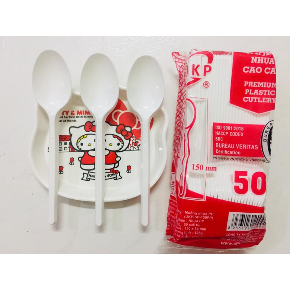 Giới thiệu Thìa Nhựa Cứng Dùng 1 Lần Túi 50 Cái ( Loại Đẹp UKP ). Nhựa Huysun