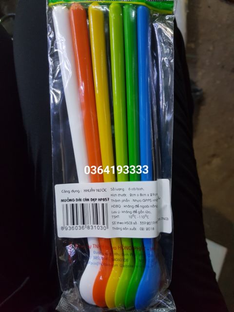 Giới thiệu Thìa nhựa dài nhiều màu 6 chiếc 1 gói ( hàng đẹp dày bóng )